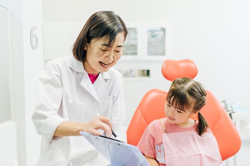 「来てくださったすべての患者さんの歯の健康を守りたい」、当院ではそう考えています。そのためには、患者さんにしっかりと通院していただく必要があります。患者さんの歯の健康を守るためには、歯科医師がお口の中の状況や治療と予防の大切さを分かりやすくご説明し、患者さんに通院の必要性をご理解いただくことが大切です。当院では患者さんへのご説明を重視し、お子さんの治療であっても親御さんへの丁寧なご説明はもちろん、お子さんにも分かりやすい言葉を選び、写真や図、模型などを使いながらお口の健康の大切さをお伝えします。